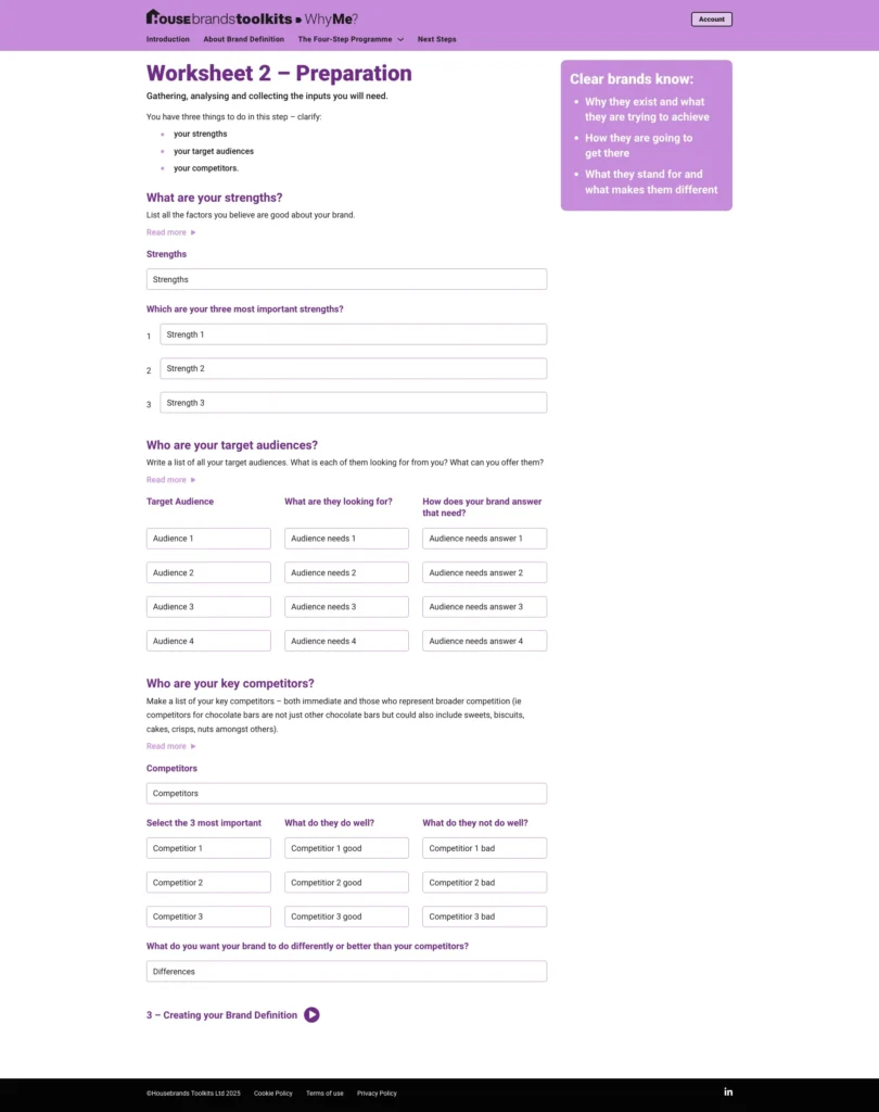 You don’t even need to have any previous brand experience as the toolkit will walk you through the programme step-by-step, providing clear definitions for any technical terms.